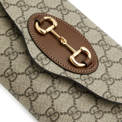 Part of Gucci’s 1955 Horsebit collection, this cross-body bag is made from the label’s monogrammed coated canvas that has a low environmental impact. Adorned with the equestrian-inspired detail at the front, this boxy style can be suspended from a chain strap or a canvas shoulder strap that’s striped in the house colours.
