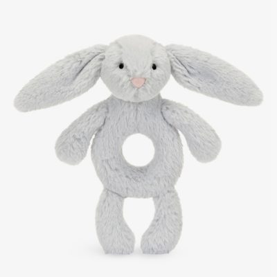 Product name is Bashful Bunny faux-fur rattle 18cm