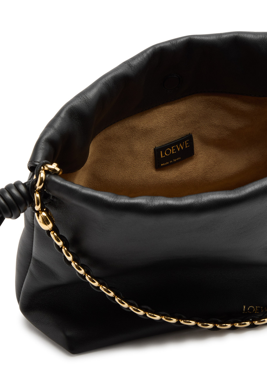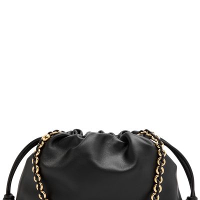 | Size | Loewe X Paula's Ibiza leather clutch Detachable adjustable shoulder strap, donut chain top handle, designer stamp at front, suede lining Knotted drawstring and concealed magnetic fastening at top |
