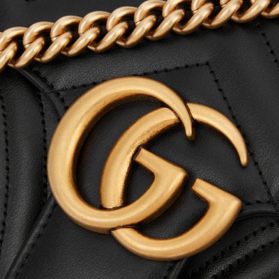 This small version of the highly coveted Gucci Marmont shoulder bag delivers a sophisticated means of transporting your daily necessities. Imagined in quilted leather, the softly structured bag comes adorned with the label’s iconic GG logo hardware and understated heart detailing on the rear.
