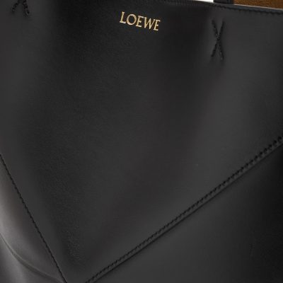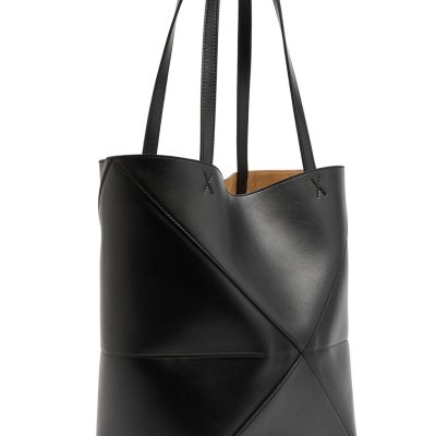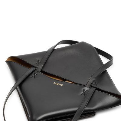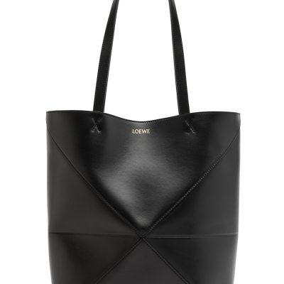 The signature panelling of Loewe’s Puzzle bag has been reworked into the design of this tote. Fusing functionality with the label’s expert craftsmanship, this unique leather design can be folded completely flat and is finished with two top handles and a gold foil logo.